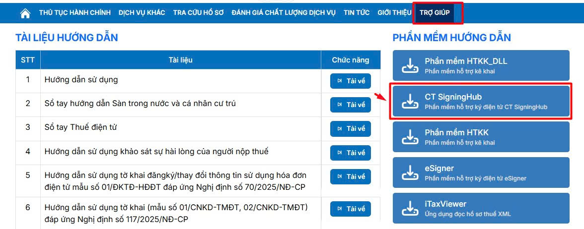 Nếu chưa có anh chị bấm vào mục Trợ giúp và chọn phần mềm hỗ trợ ký điện tử CT SignungHub Xem chi tiết