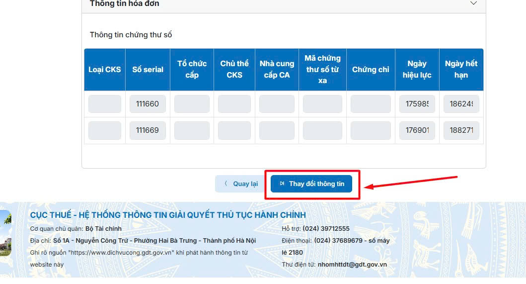 Bước 3: Khi đã vào mục quản lý thông tin anh chị khéo chuột xuống bên dưới cùng chọn thay đổi thông tin