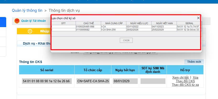 - Anh chị đã thành công cập nhập cks của kê khai thuế điện tử