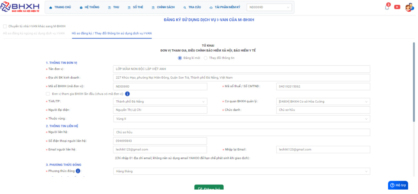 Bước 2: Sau khi BHXH tỉnh cập nhật xong thì thưc hiện đăng ký lại dịch vụ