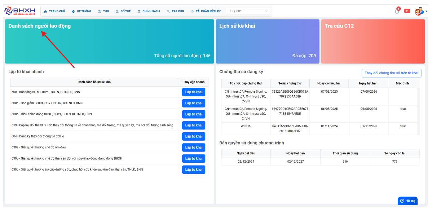 Với chức năng thêm người lao động, đơn vị ấn Thêm người lao động và trong phần CẬP NHẬT THÔNG TIN NGƯỜI LAO ĐỘNG, anh chị điền thông tin ô * và số điện thoại