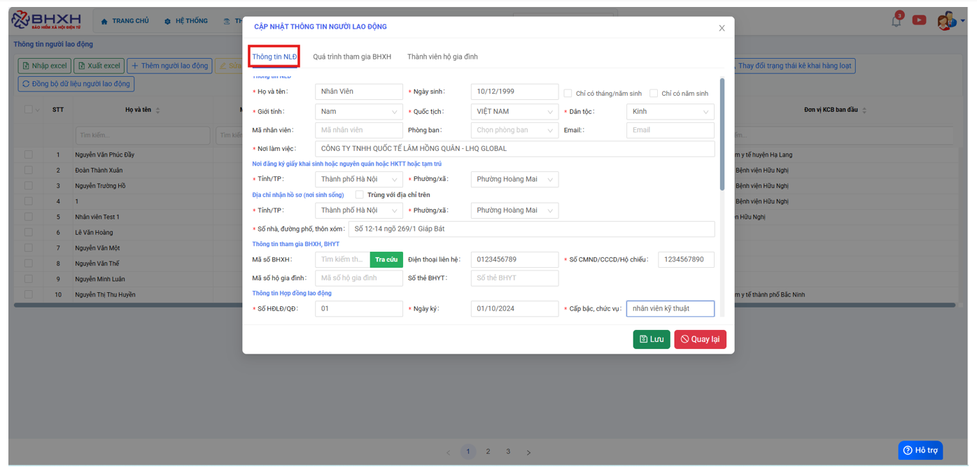 Hướng dẫn thêm sửa xóa thông tin người lao động
