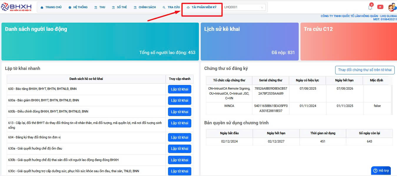 Thay đổi cập nhật chữ ký số trên BHXH-Minvoice