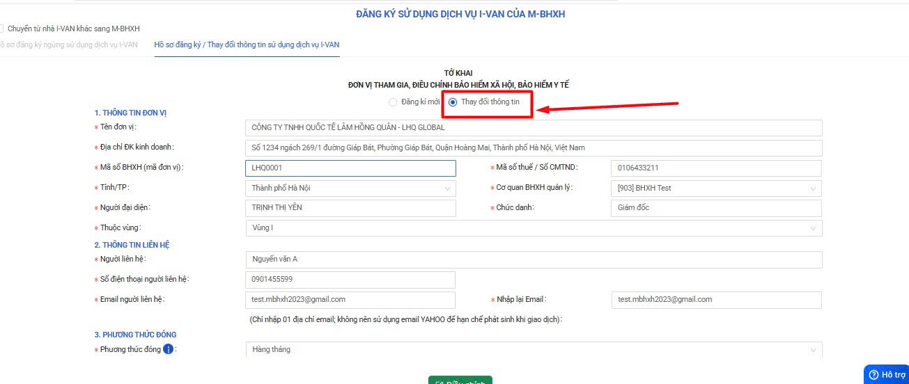 Bước 3: Bấm vào mục thay đổi thông tin và kiểm tra các thông tin bên dưới