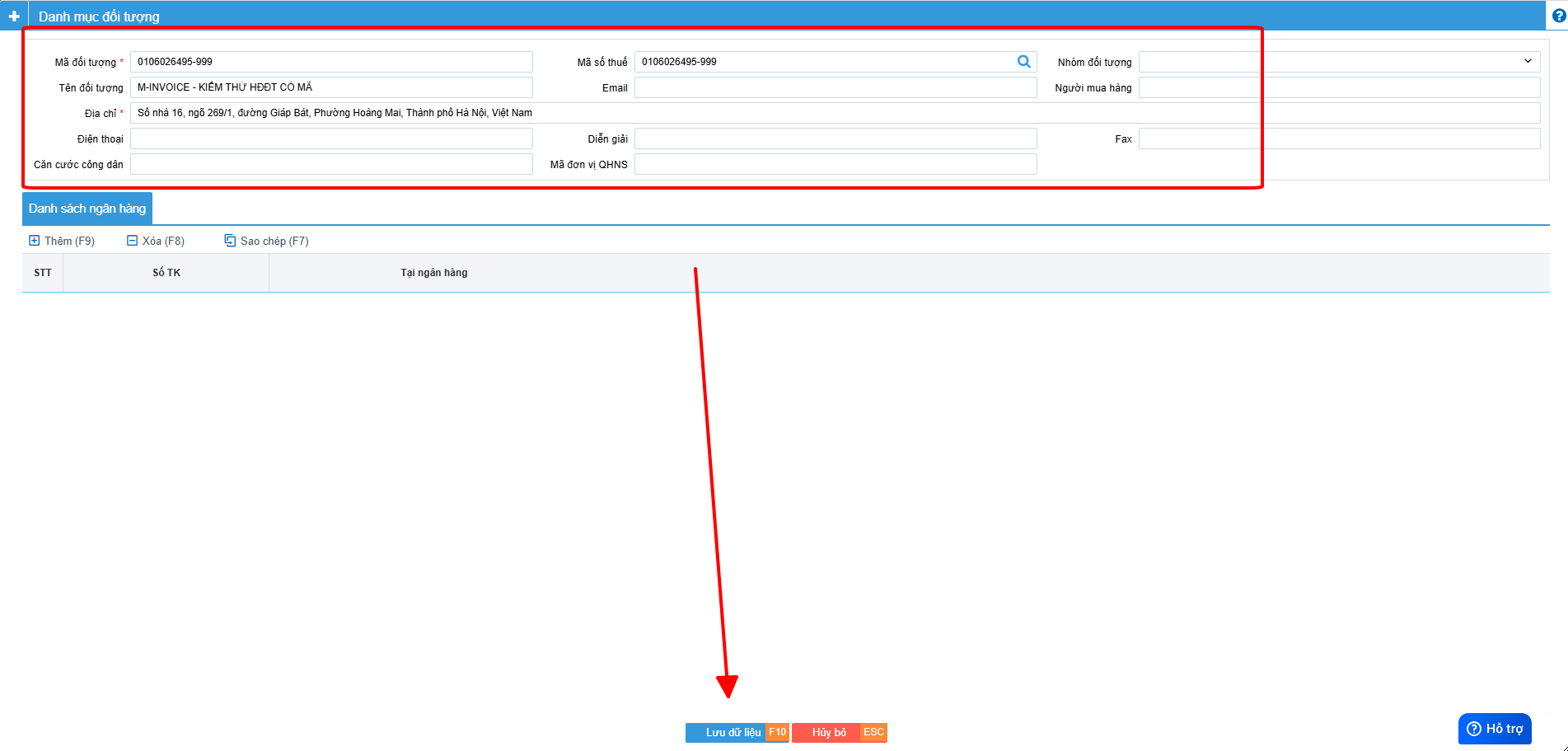 Nhập đầy đủ thông tin như Mã khách hàng, mã số thuế, Tên đơn vị, Địa chỉ .... Khi nhập xong bạn nhấn Lưu để lưu hàng mã hàng khách hàng này vào