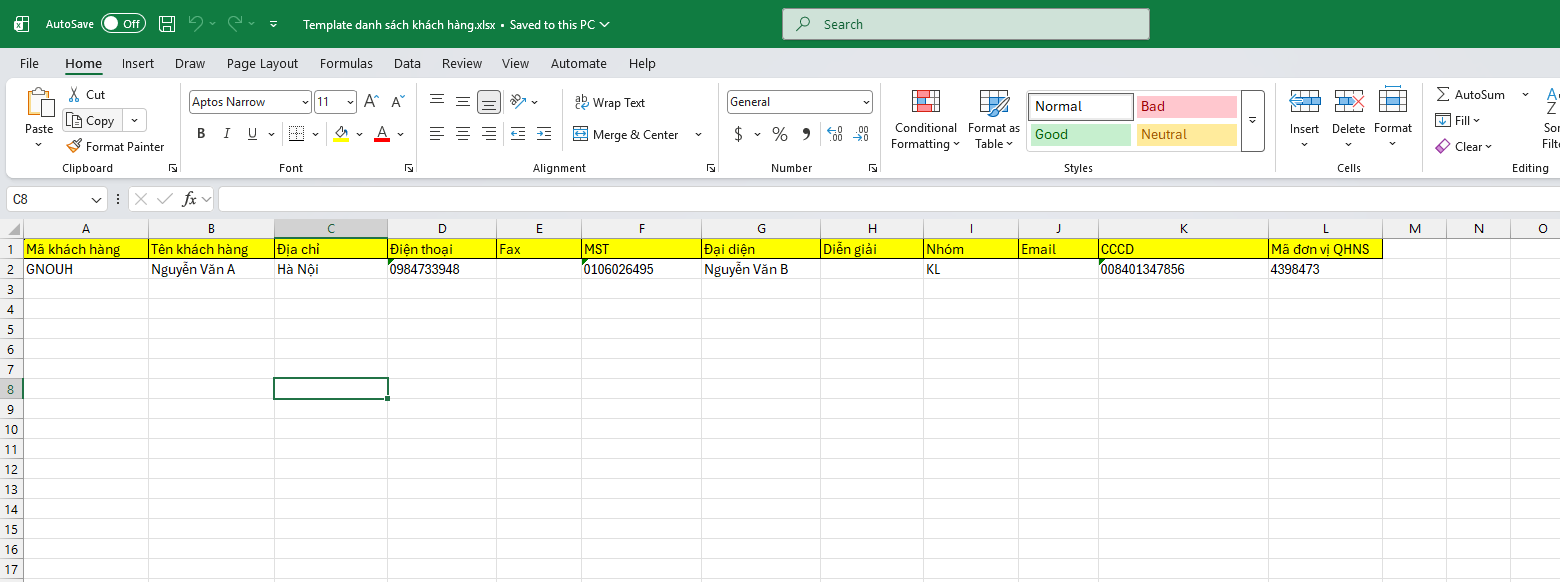 Nhập thủ công từ Danh mục - Khách hàng