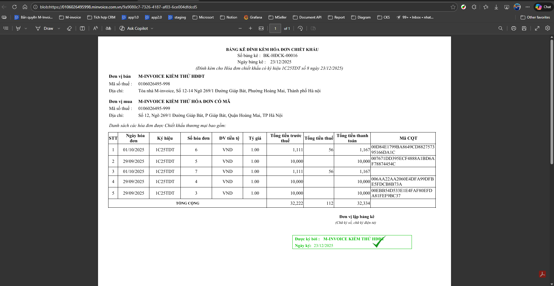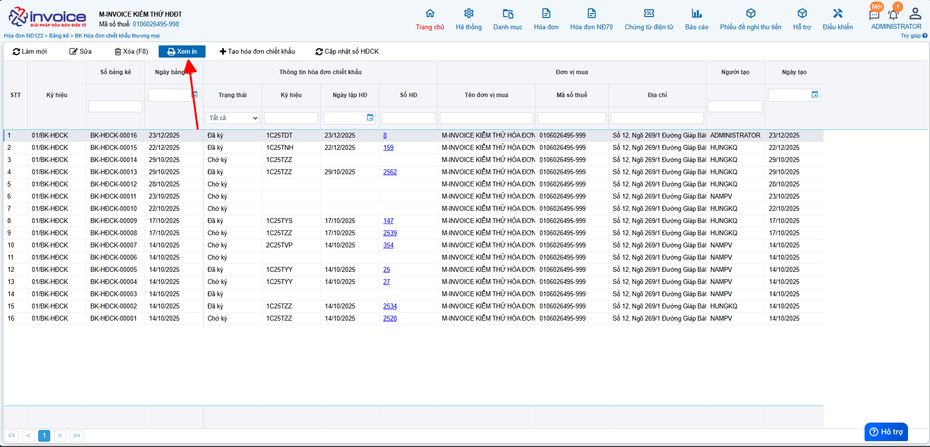 Bước 3: Kiểm tra bảng kê chiết khấu đã lập