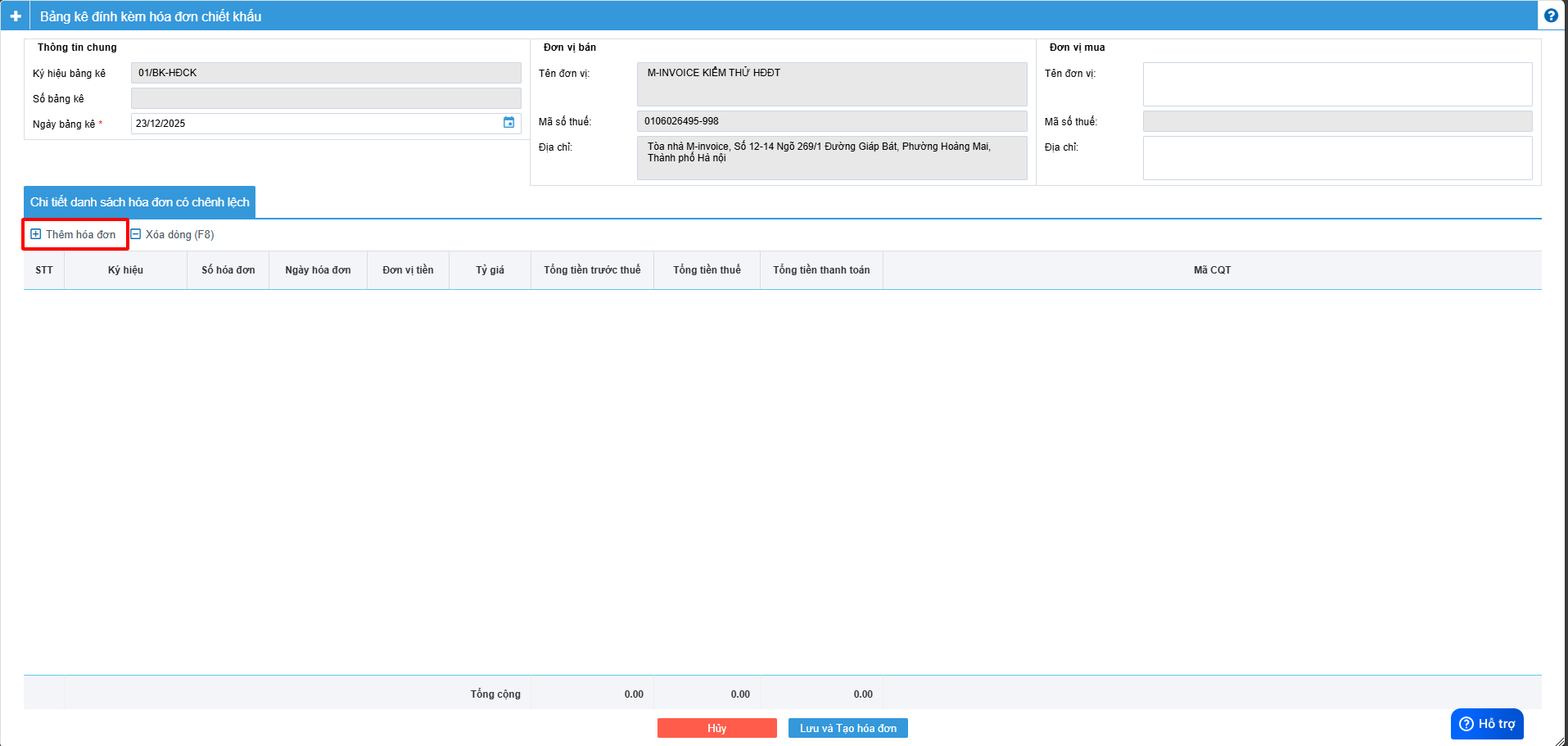 Bấm Thêm hóa đơn