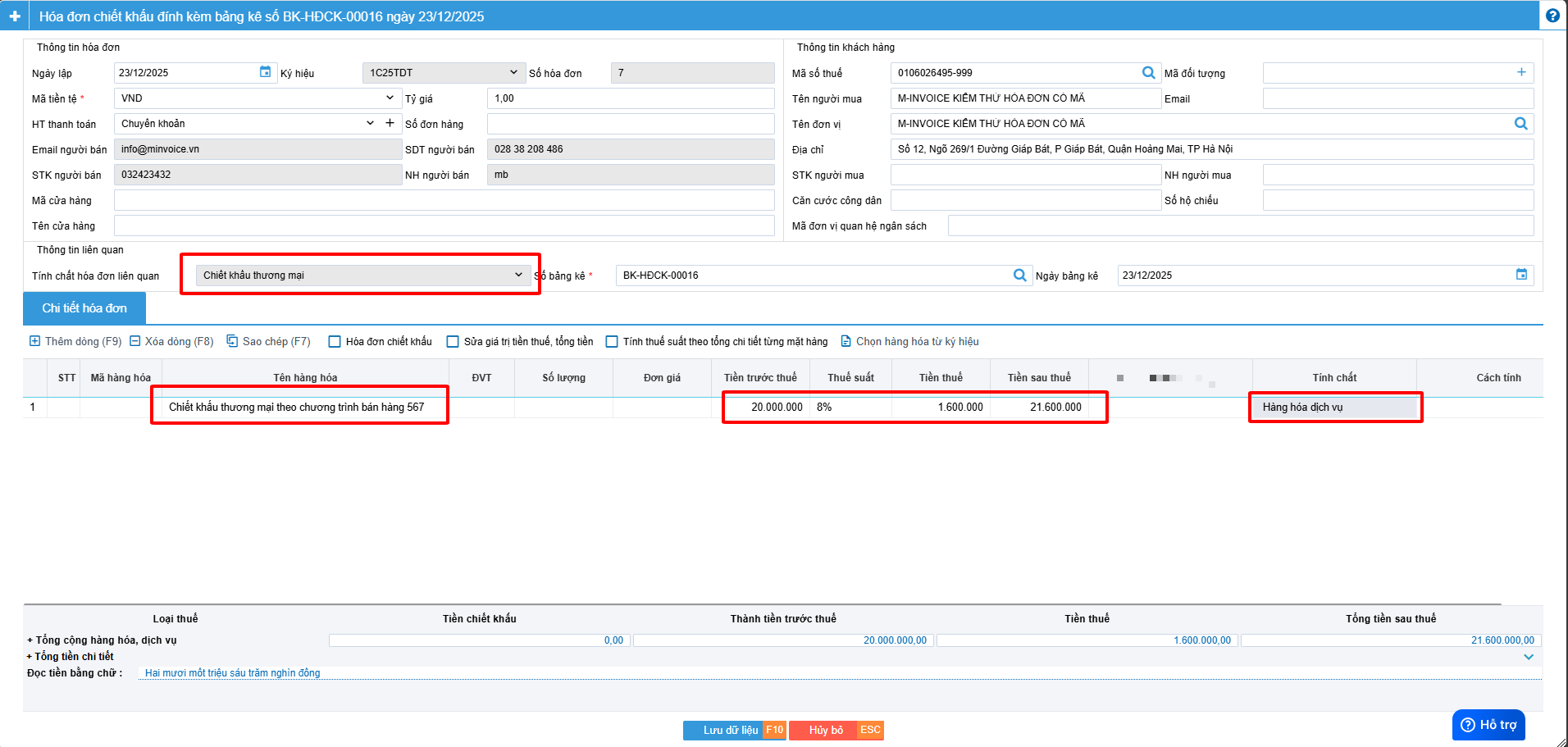Điền số điền chiêt khấu (ví dụ ở ảnh trên là 21.600.000)