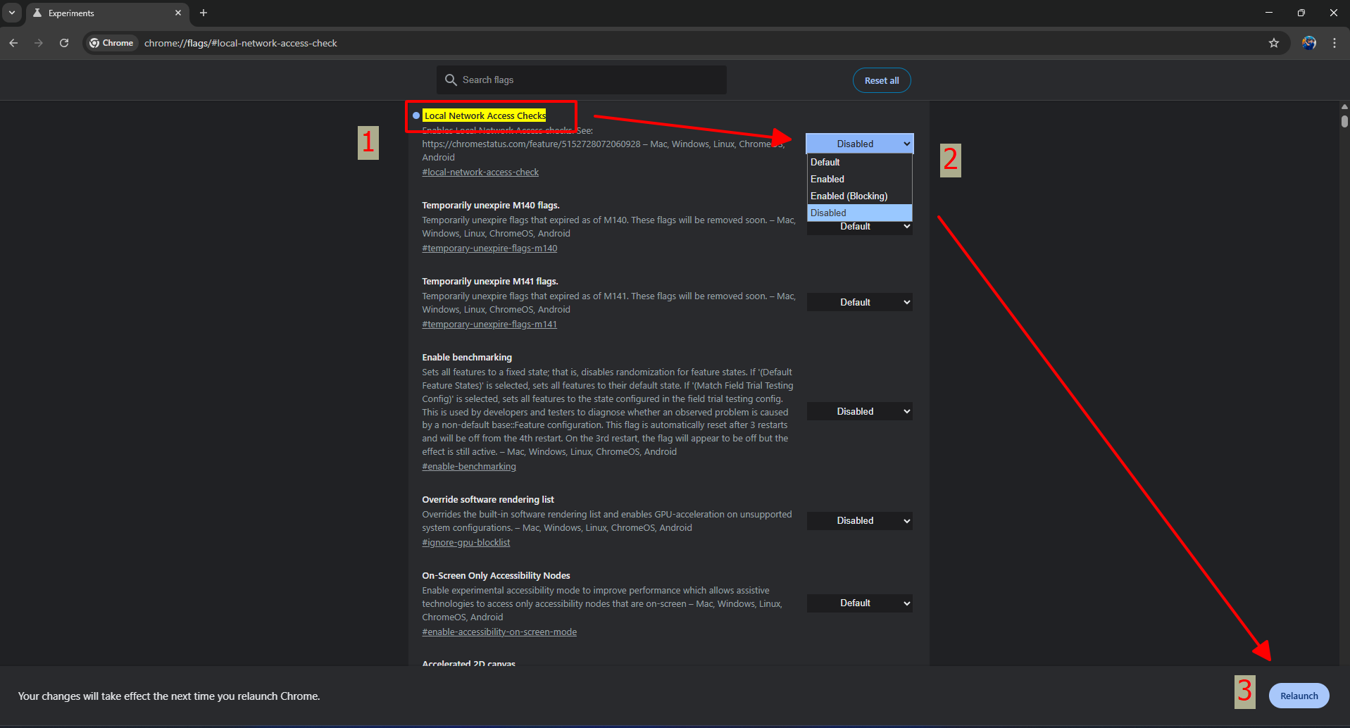 Bước 2: Chọn "Disabled" Local network Access Checks