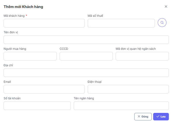 Lưu trữ thông tin khách hàng: Tên đơn vị/cá nhân, MST, địa chỉ, email… dùng lại nhiều lần.