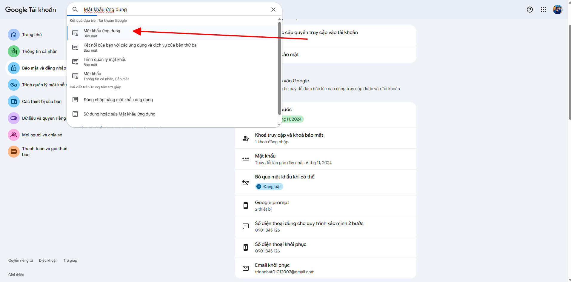 3. Tìm kiếm mật khẩu ứng dụng (Để tạo mật khẩu ứng dụng)