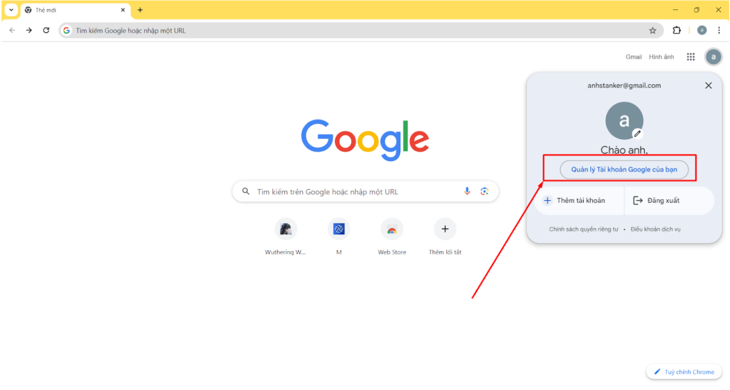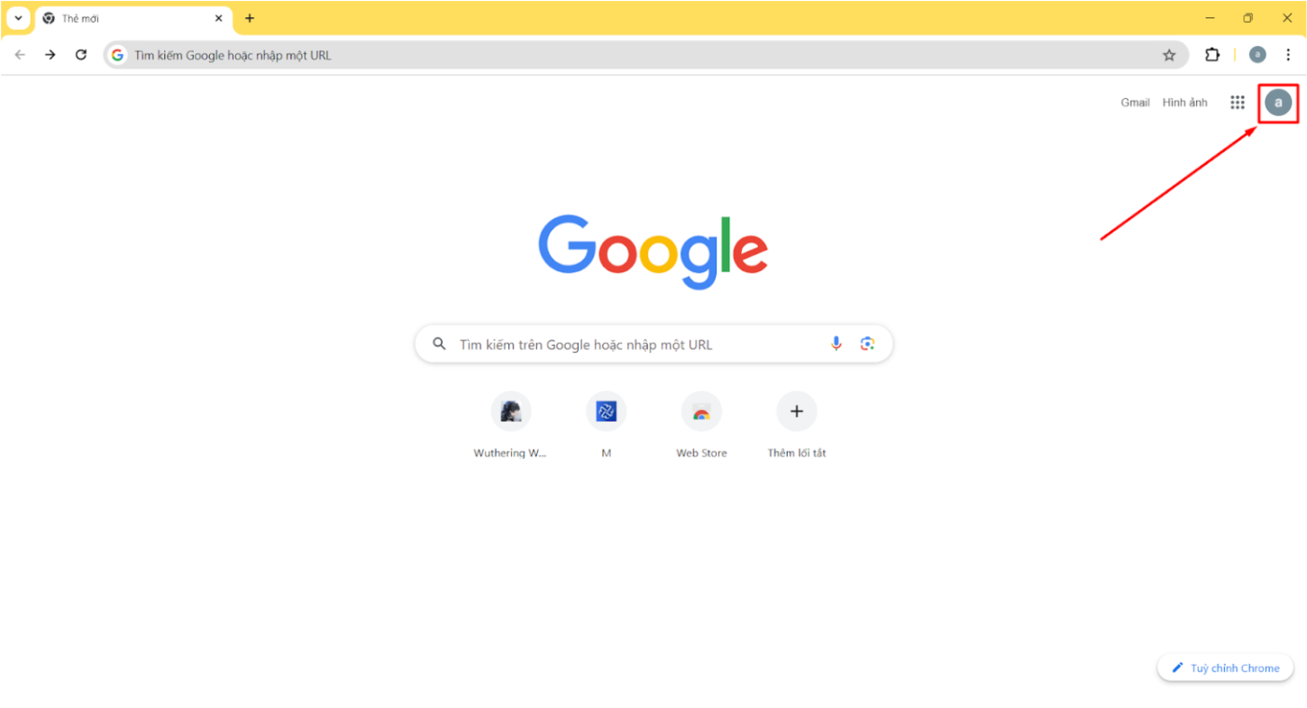 - Tại trang Google click vào biểu tượng tài khoản ở góc trên bên phải màn hình