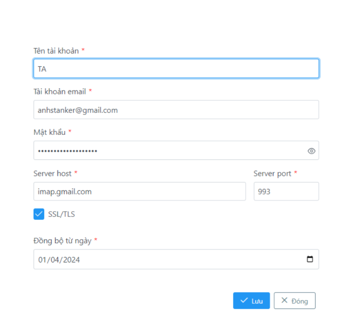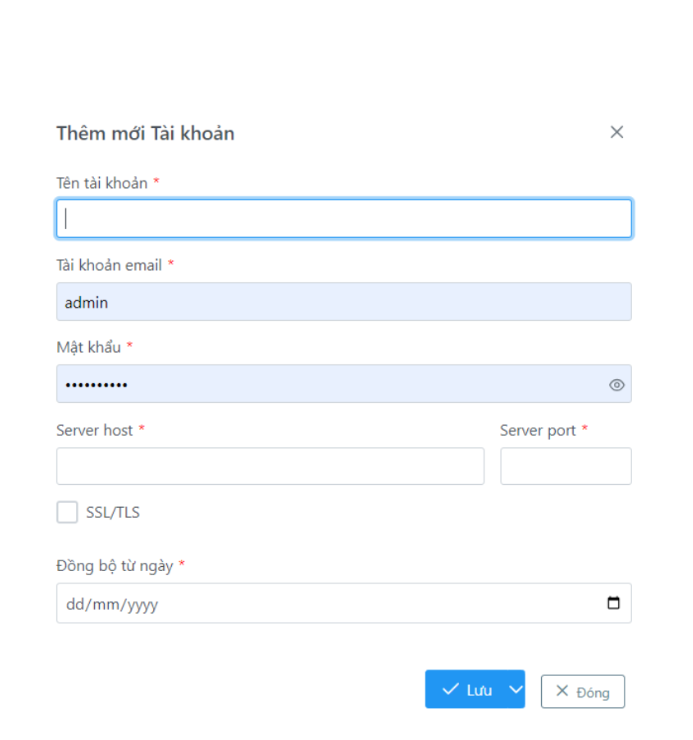 Đồng bộ từ ngày | Là ngày bắt đầu đồng bộ dữ liệu mail |