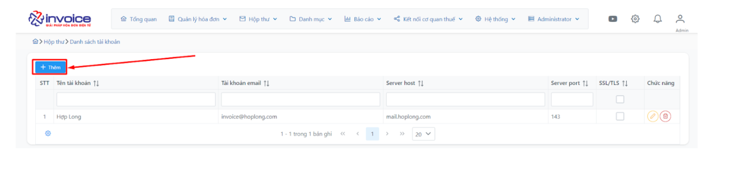 - Sau khi màn hình hiển thị danh sách tài khoản mail chọn nút Thêm để hiện ra form thêm tài khoản nhận mail